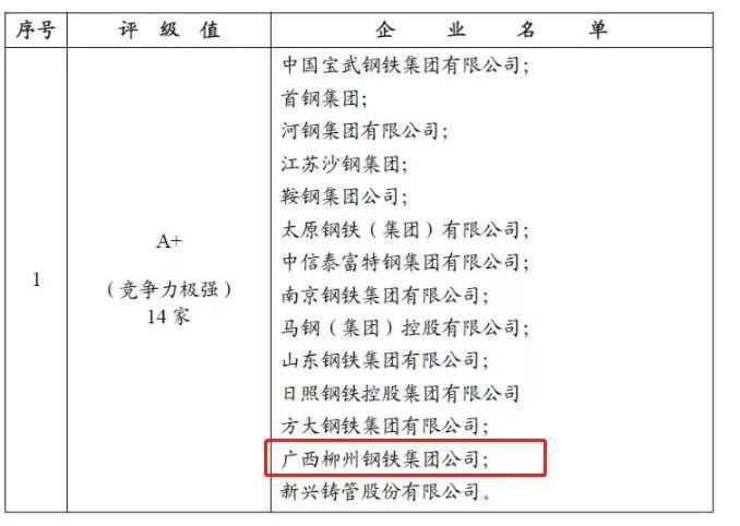A+级竞争力极强钢铁企业