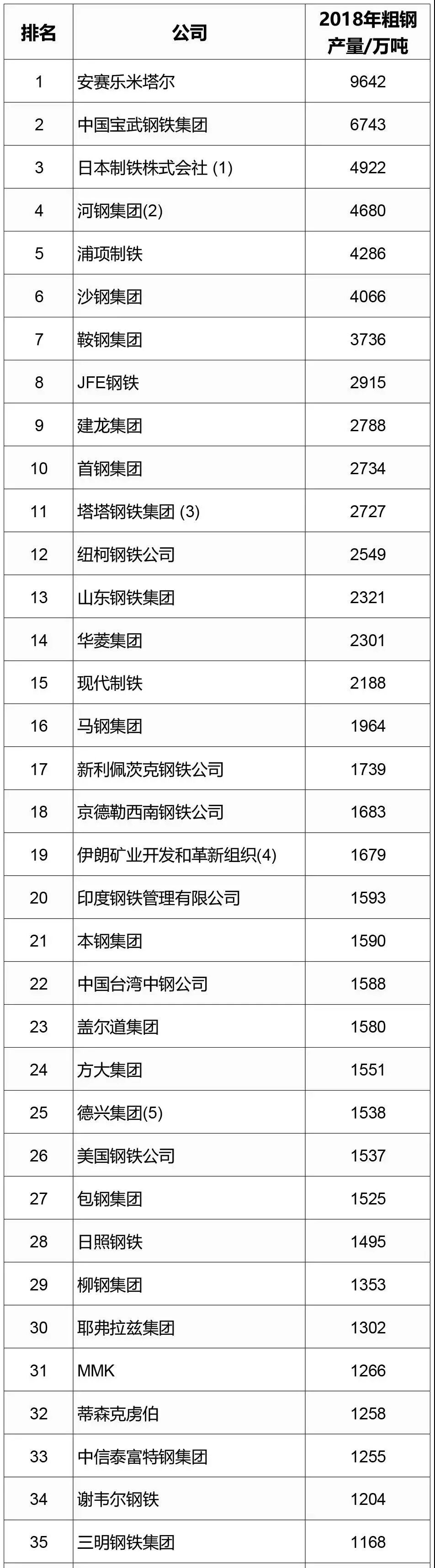 该统计数据根据2018年粗钢产量情况